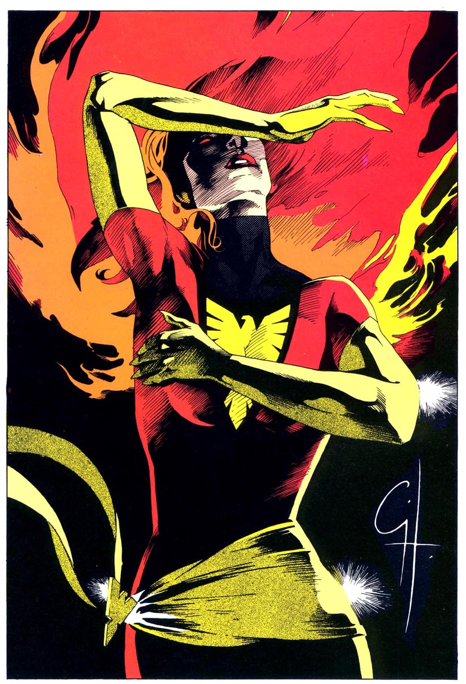 “Dark Phoenix”; pin-up por Craig Hamilton en Marvel Fanfare #35 (Marvel Comics, 1987).