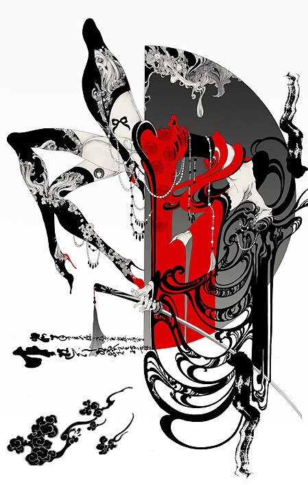 “The Grateful Crane”; arte por Aya Kato, circa 2007.