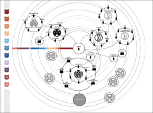 You can read the bible a couple of ways. It’s a character map. It’s an evolving story where as the circles get bigger that’s kind of the stuff we’re touching on. It’s not really up to scale and it’s a little dishonest, though, because a lot of stuff happens very quickly and then things get even bigger than that. All of the information there is not necessarily true because this is a spy book and I promise we will lie to you.”