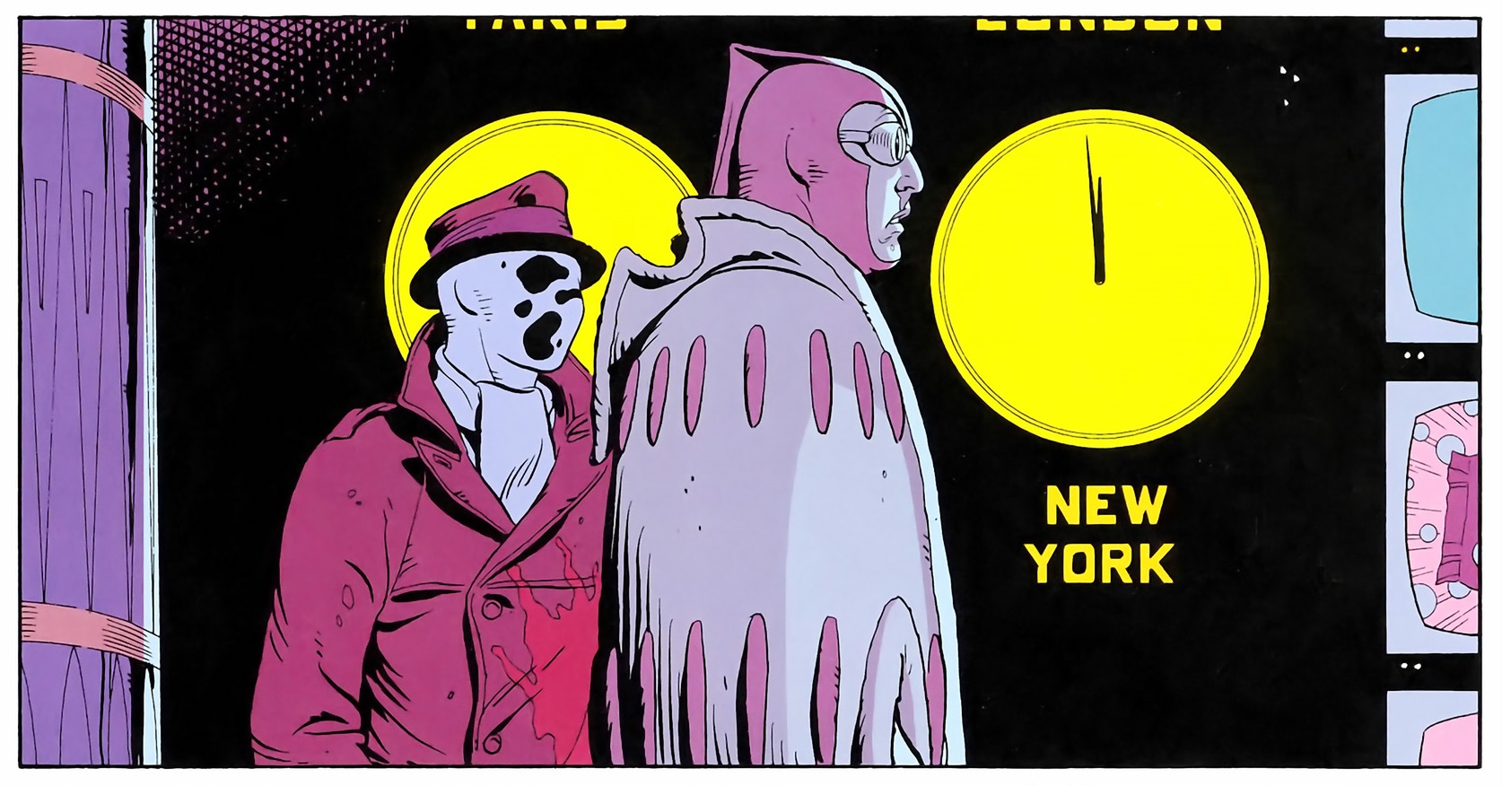 Fragmento del comic Watchmen #11 (DC Comics, 1987); arte por Dave Gibbons y color por John Higgins.