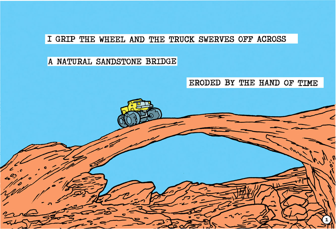Fragmento del comic “Monster Truck” (Wishbone Studio, 2011); arte por Michael “Shaky Kane” Coulthard.
