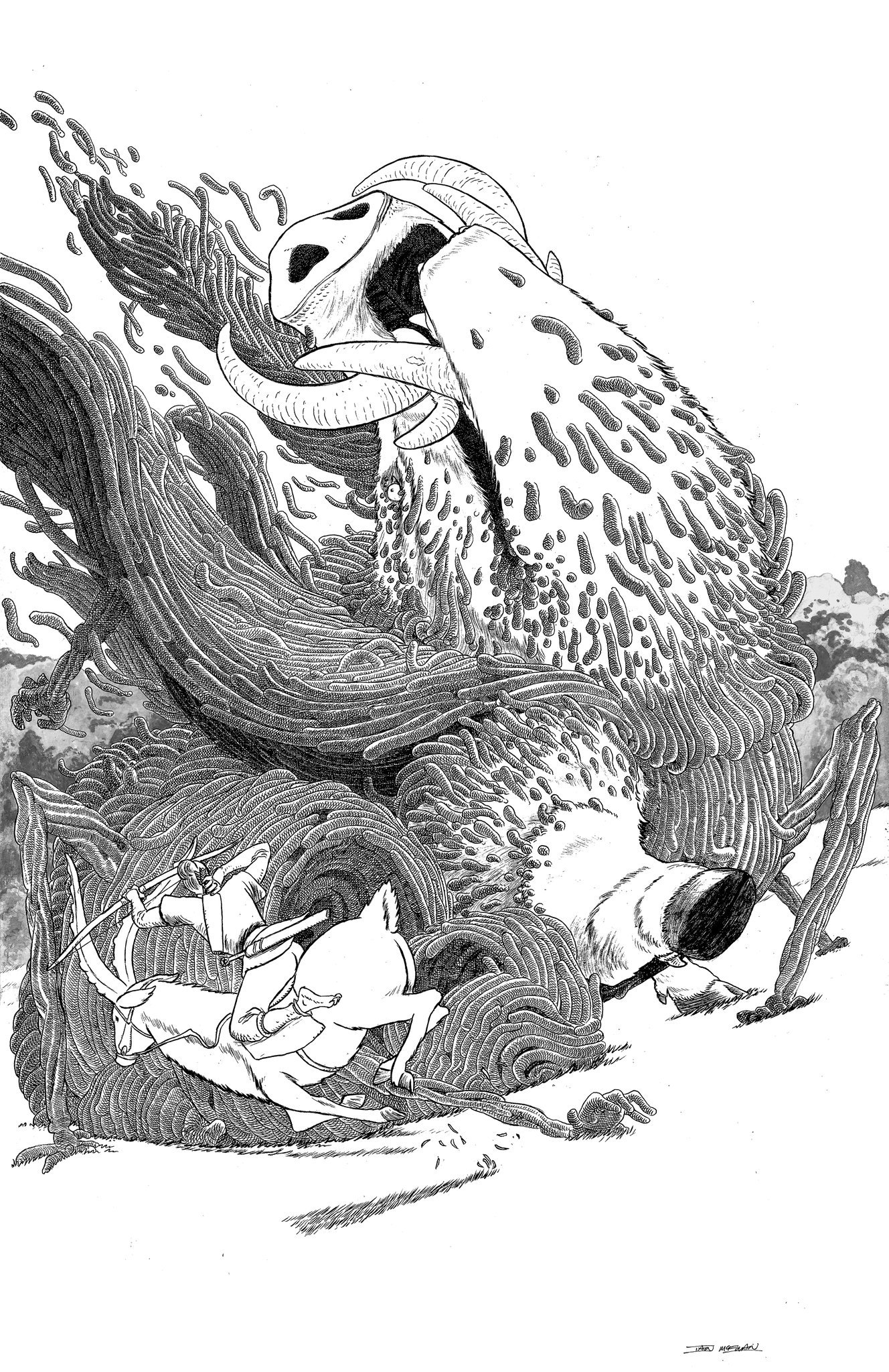 Ashitaka & Nago, personajes del anime “Princess Mononoke”; arte por Ian MacEwan, 2018.