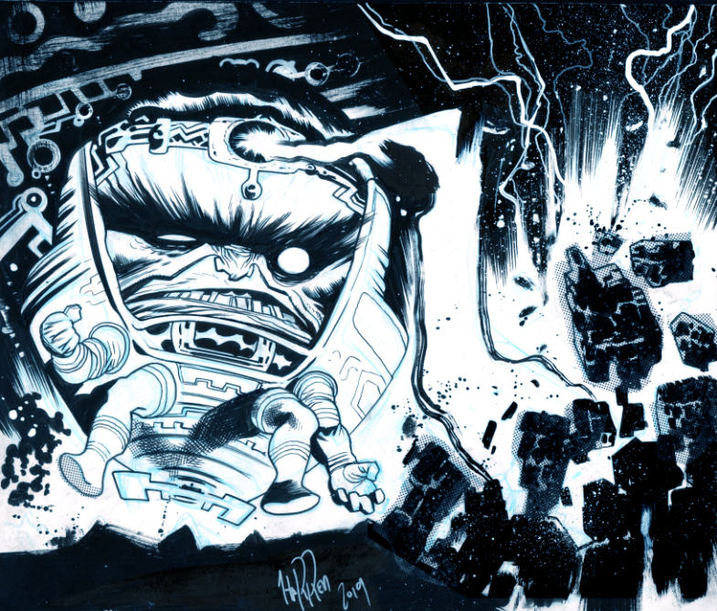 “MODOK, for fun”; arte por James Harren (JamesHarren1, vía Twitter), 12 de julio 2019.
