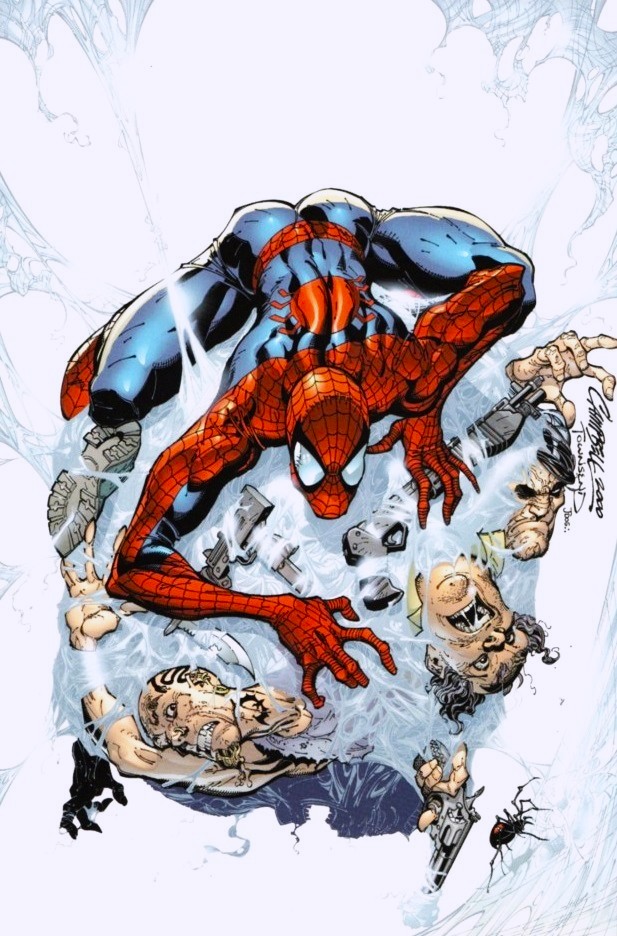 Portada para Amazing Spider-Man vol. 2 #30 (Marvel Comics, 2001); arte por Jeffery Scott Campbell, tintas por Tim Townsend y color por Avalon Studios.