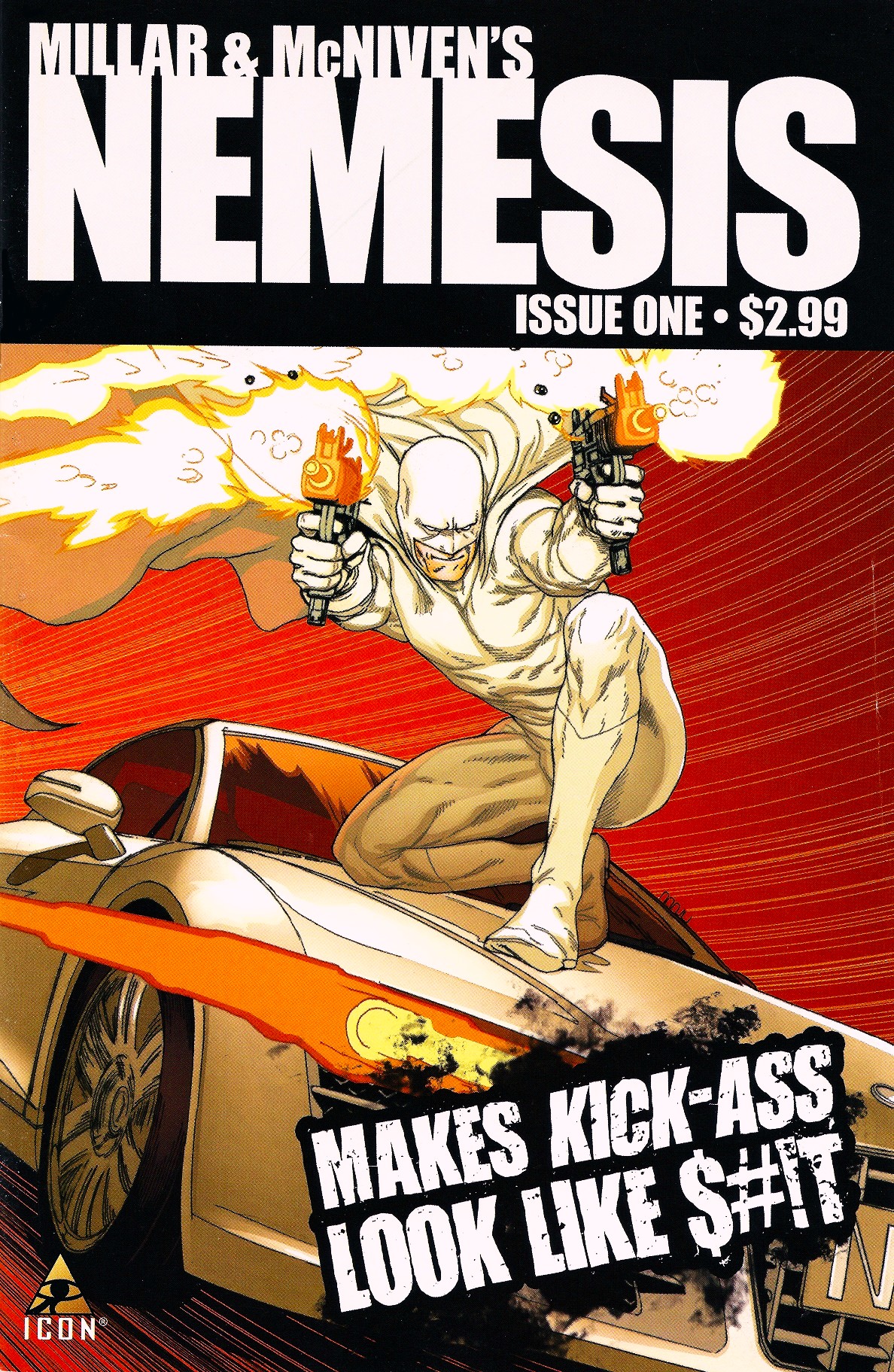 Portada para Millar & McNiven’s Nemesis #1 (Marvel Comics/Icon, 2010); arte por Steve McNiven, color por Dave McCaig.