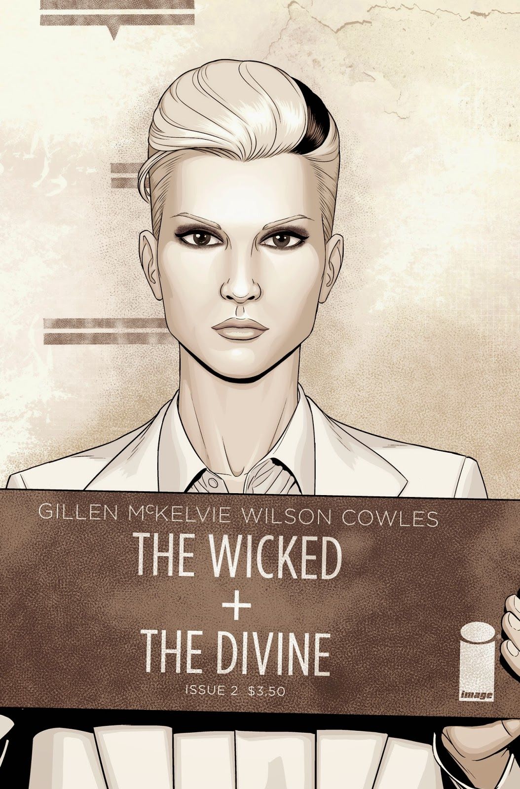 Portada variante para The Wicked + The Divine #2 (Image Comics, 2014); arte por Jamie McKelvie, color por Matthew Wilson. Esta edición exclusiva para la tienda Beach Ball Comics rinde homenaje a la infame ficha policial tomada al cantante británico David Bowie el 21 de marzo de 1976, tras ser arrestado después de un concierto en Rochester, NY.