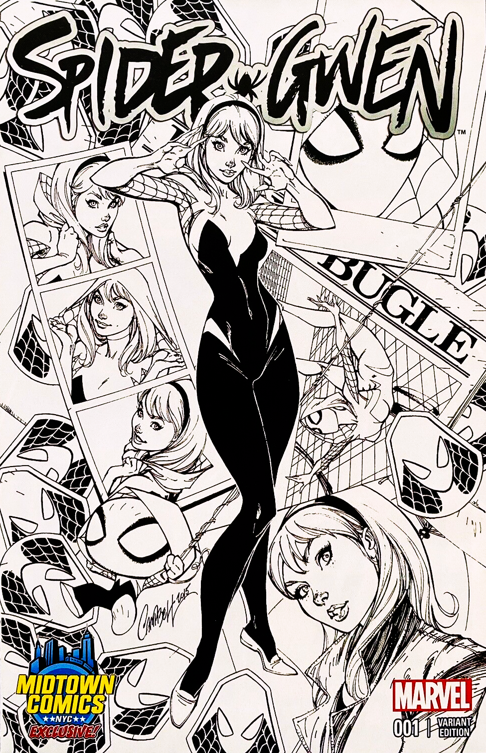 Portada variante para Spider-Gwen (vol. 1) #1; arte por J. Scott Campbell, en edición limitada para Midtown Comics.
